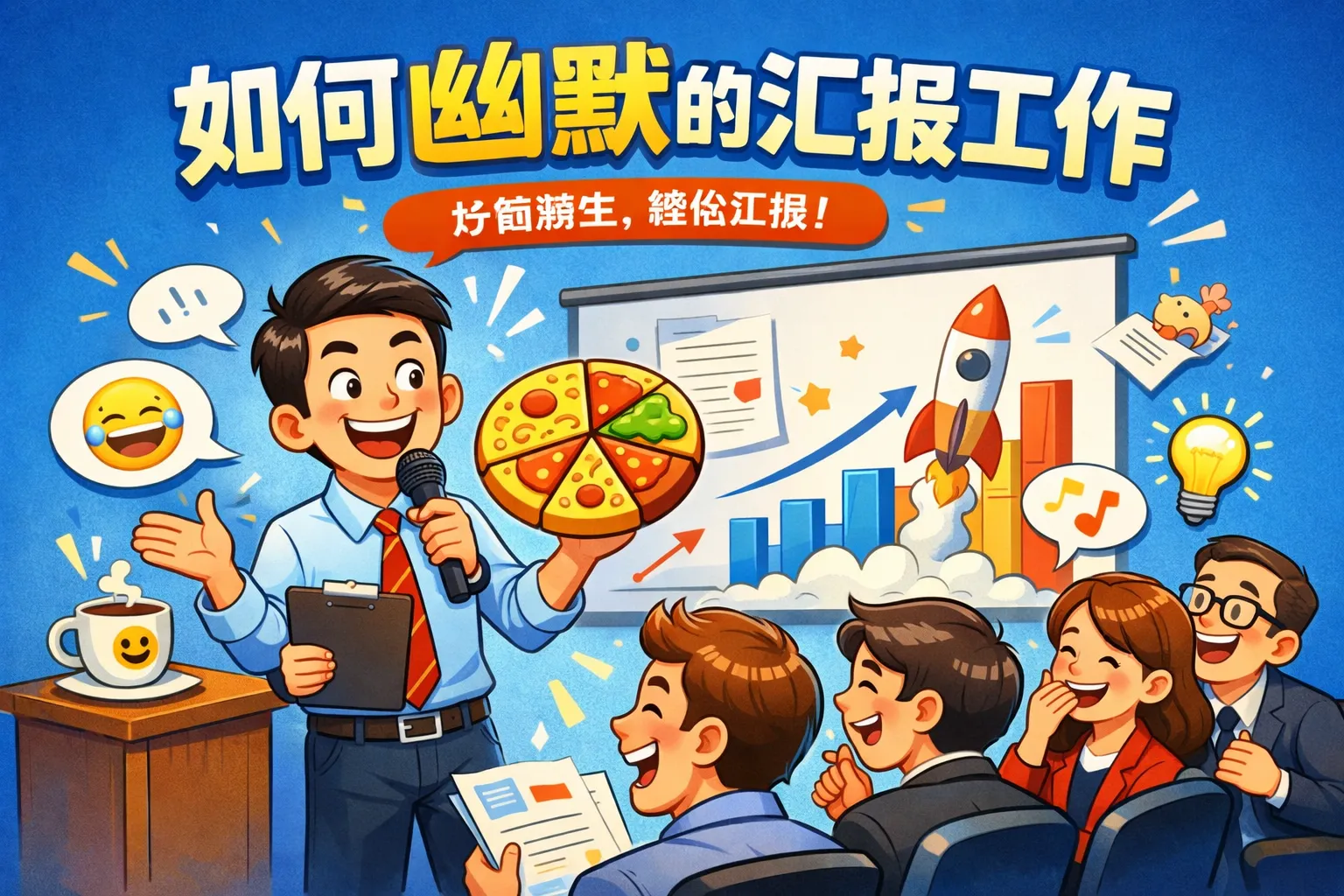 适合使用的幽默类型包括自嘲式幽默、轻松的行业笑话或和同事相关的趣事。避免讽刺、政治或敏感话题。通过选择积极、亲切且贴近工作实际的幽默,能有效提升汇报的吸引力。