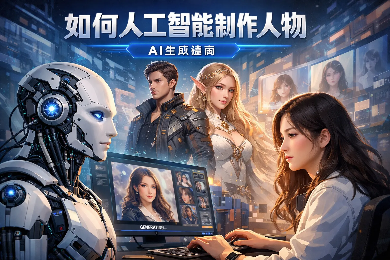 人工智能通过深度学习、生成对抗网络(GAN)、图像识别和自然语言处理等技术来生成和优化虚拟人物形象。例如,GAN可以合成高质量的面部图像,深度学习模型则能设计人物的动作和表情,使虚拟角色更具真实感和互动性。
