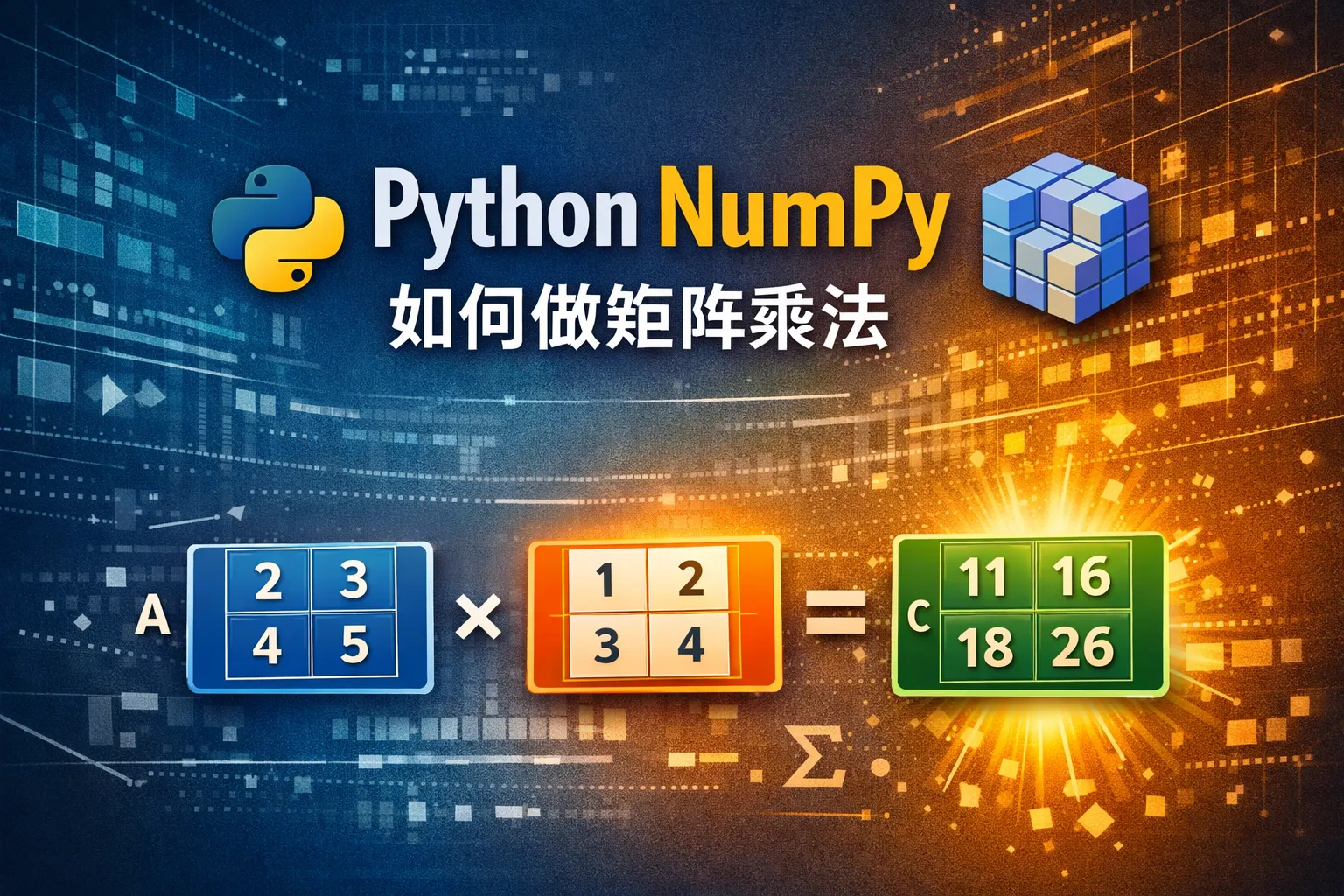 我有两个二维数组,想用 NumPy 快速计算它们的矩阵乘积,应该用哪个函数?