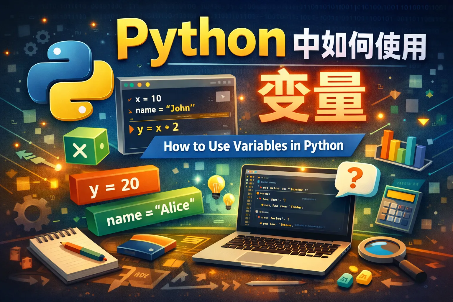 在Python中,变量用来存储数据值,它们就像一个容器,可以保存不同类型的信息,比如数字、文本或者列表。通过变量,程序能够处理和操作数据,实现动态的功能。