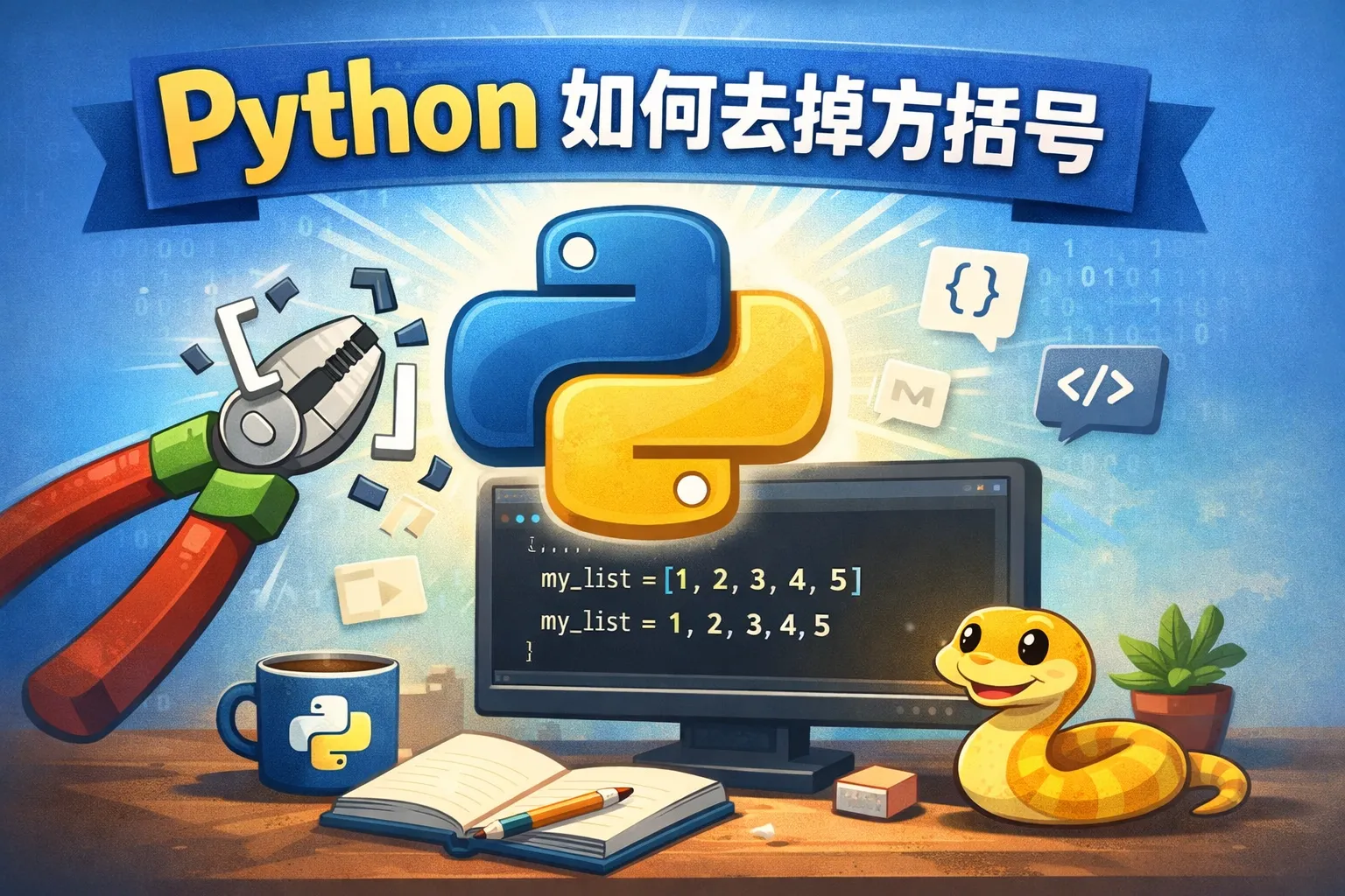 可以使用字符串的join方法,将列表的每个元素转换为字符串后连接起来。比如,' '.join(str(x) for x in my_list)会把列表元素用空格连接成一个字符串,而没有方括号显示。