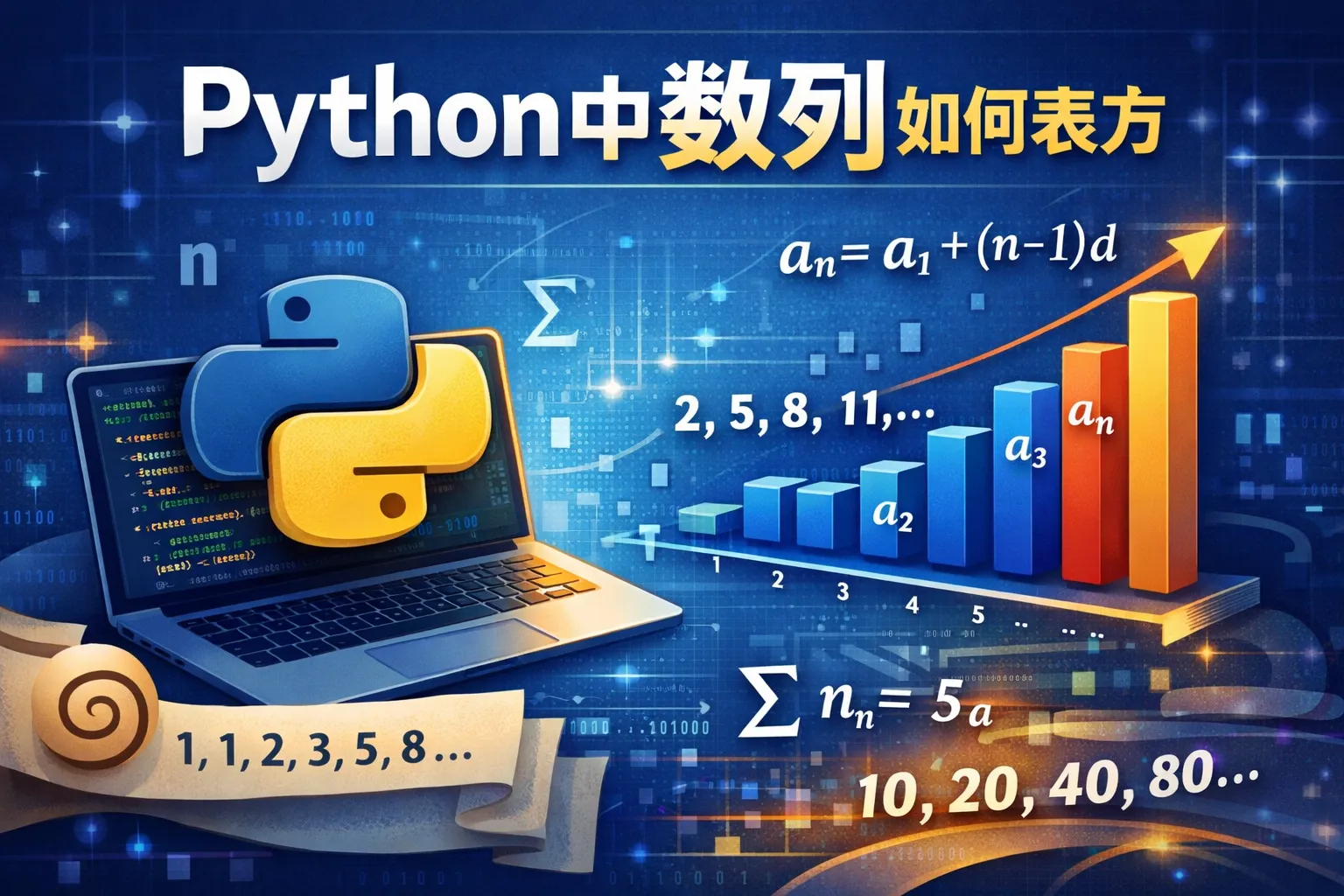Python中可以使用range()函数来生成整数数列,例如range(1, 10)会生成从1到9的整数序列。另外,可以通过列表推导式快速生成满足特定条件的数列。还可以利用NumPy库中的arange()或linspace()函数,生成更加灵活的数值序列。