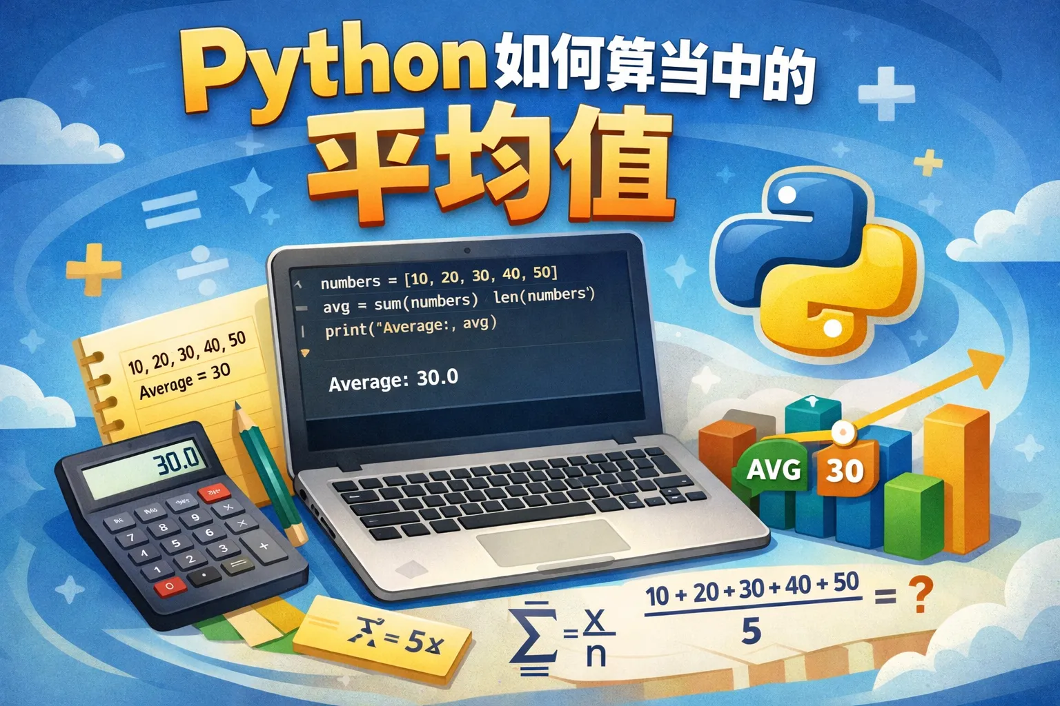 Python的statistics模块提供了mean()函数,可以用来计算平均值。示例代码: