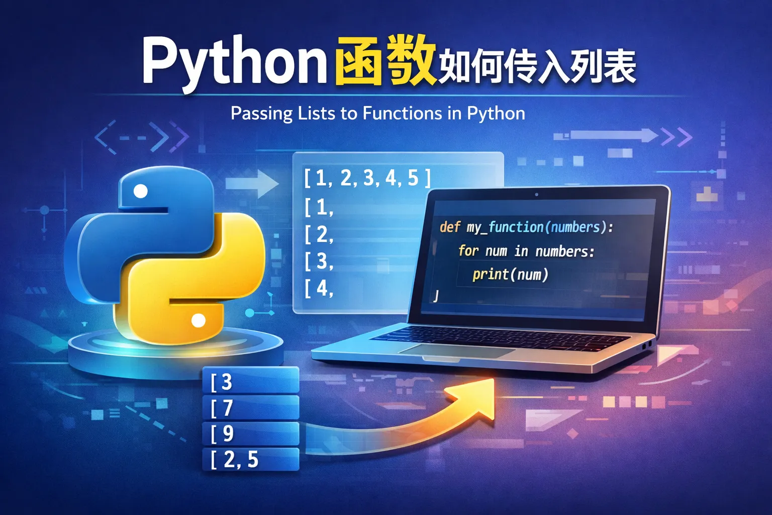 在Python中,可以在函数定义时直接将列表作为参数。例如: