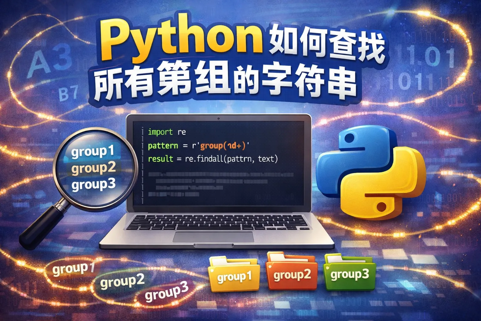 Python的re模块提供了findall函数,可以直接返回所有匹配的分组内容。如果正则表达式中含有多个分组,findall返回的是一个元组列表,每个元组包含对应的分组字符串。也可以使用finditer函数获得一个迭代器,通过match对象的group方法获取对应的分组。
