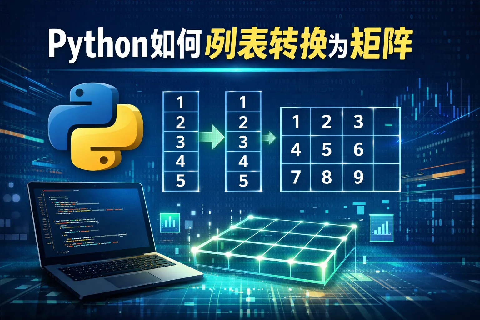 在Python中,可以利用NumPy库的array()函数直接将列表转换成矩阵。此外,列表解析也可以按指定的行列数拆分列表生成二维列表,模拟矩阵结构。