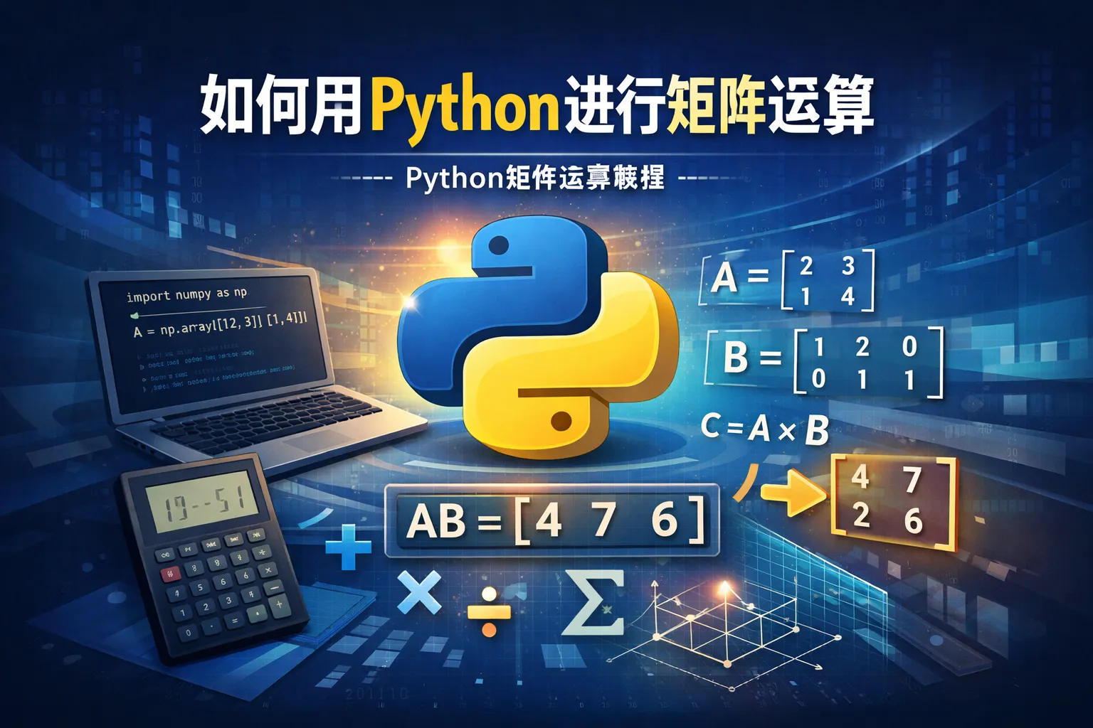 要进行矩阵加法,可以直接用加号(+)运算符,例如:A + B。矩阵乘法则需要使用dot函数或者@符号,例如:np.dot(A, B)或A @ B。示例代码:import numpy as np; A = np.array([[1, 2],[3,4]]); B = np.array([[5,6],[7,8]]);加法结果 = A + B;乘法结果 = A @ B。