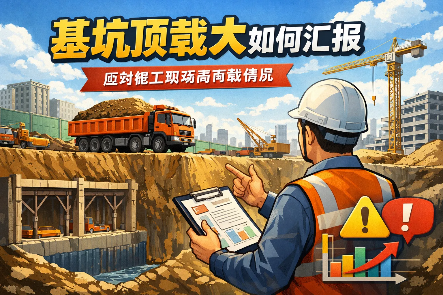 发现基坑顶荷载过大后,汇报时除了汇集现状数据外,还应向管理层提出哪些合理建议以确保安全?