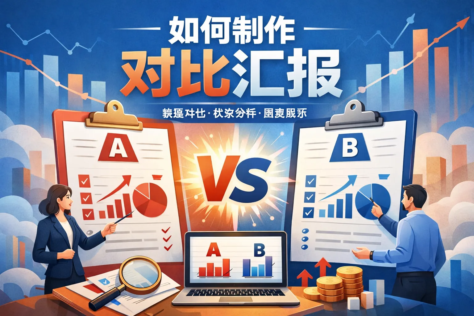 对比汇报需要包含清晰的比较指标、各项数据的具体表现、优劣势分析以及总结性的结论。确保所选数据具有代表性,且各项对比因素保持一致性,让读者能够直观地看到差异和趋势,从而辅助决策。