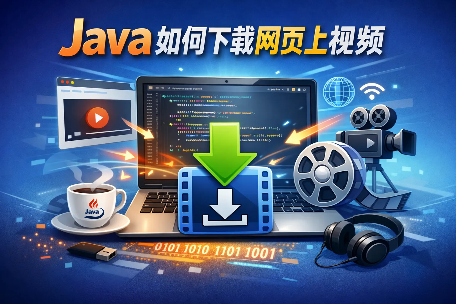在Java中,可以使用HttpURLConnection或第三方库如Apache HttpClient来发送HTTP请求并获取视频流,还可以利用Jsoup解析网页获取视频链接。下载后可以通过输入输出流将视频保存到本地。
