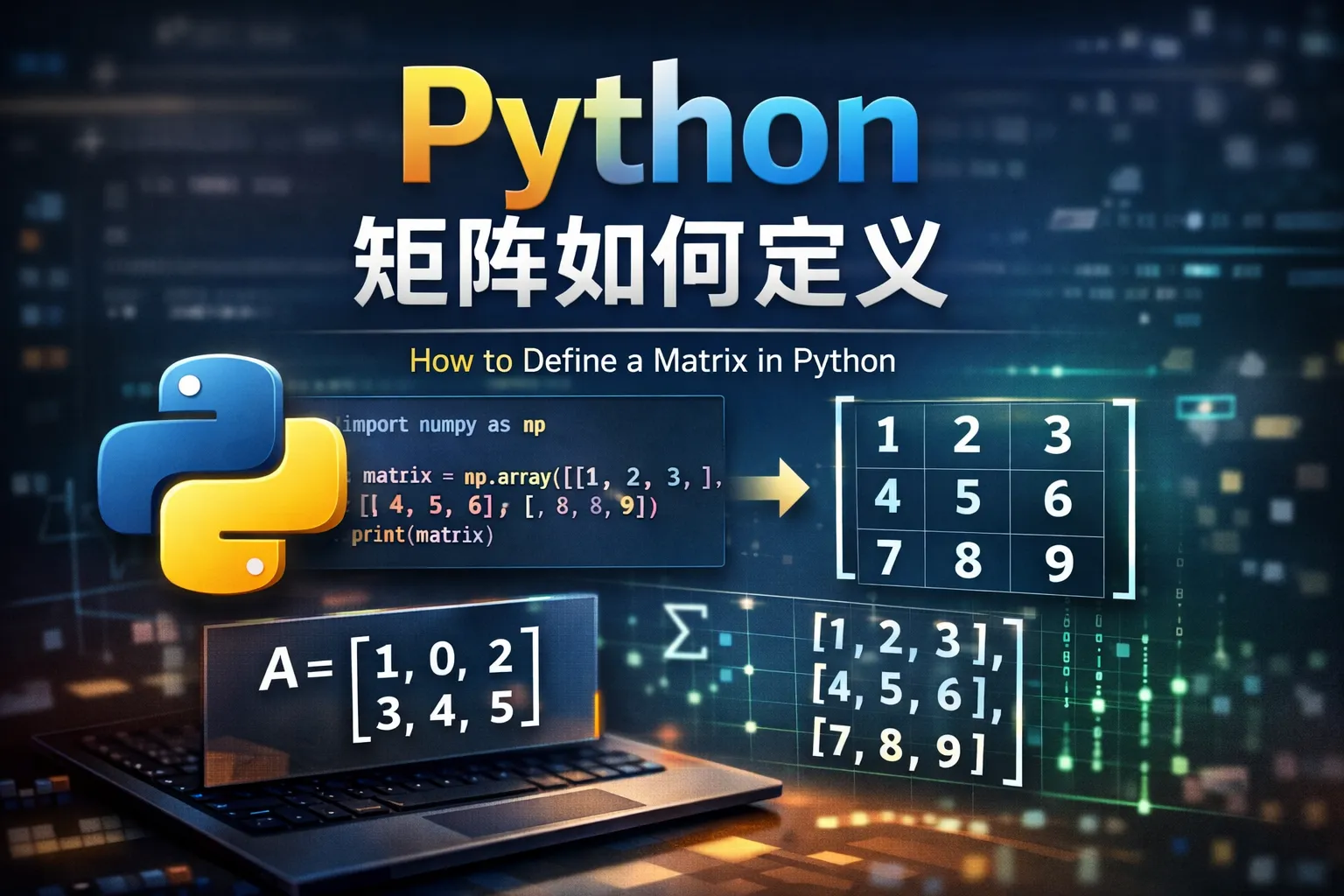 在Python中,可以使用多种方式定义矩阵。一种是使用嵌套列表(List of Lists)来表示二维矩阵。另一个更常用的方法是借助NumPy库,通过numpy.array()函数轻松创建矩阵。此外,pandas库的DataFrame也可以用于矩阵形式的数据处理。根据应用场景选择合适的方法可以提高代码效率和可读性。