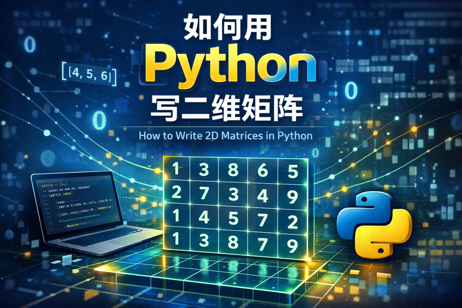 NumPy是Python中常用的数值计算库,提供了ndarray数据结构来高效存储和操作多维数组。使用NumPy,可以通过numpy.array()轻松创建二维矩阵,同时支持丰富的矩阵运算和函数,大大简化了代码复杂度。
