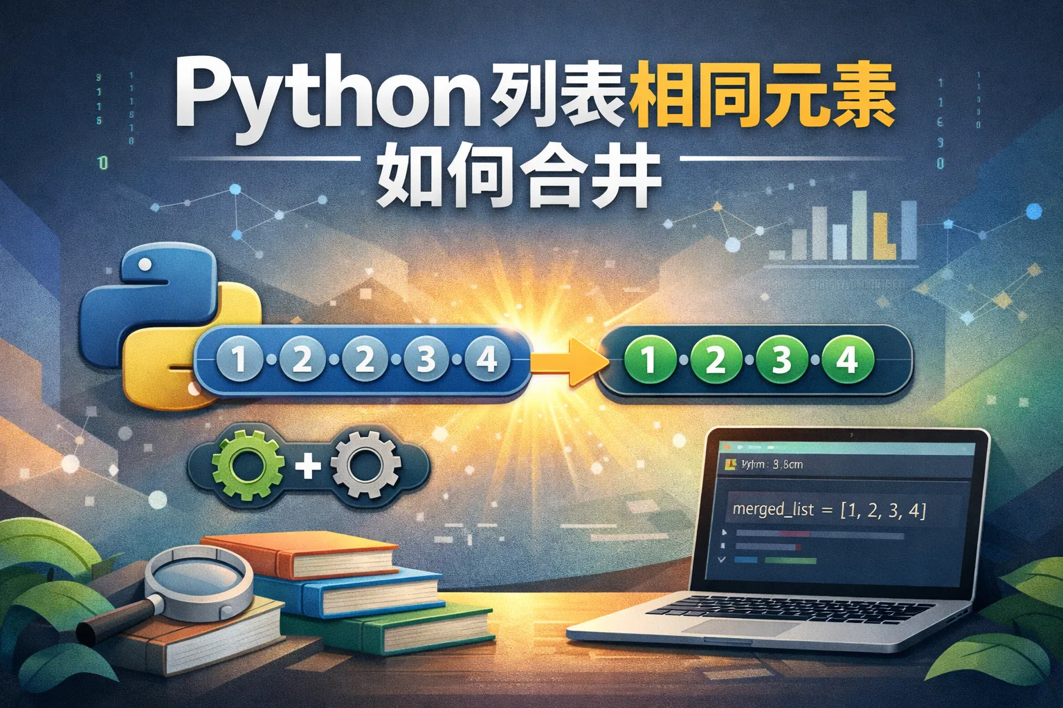 可以使用字典存储元素并对重复元素进行自定义操作。示例为对数字列表中相同元素求和: