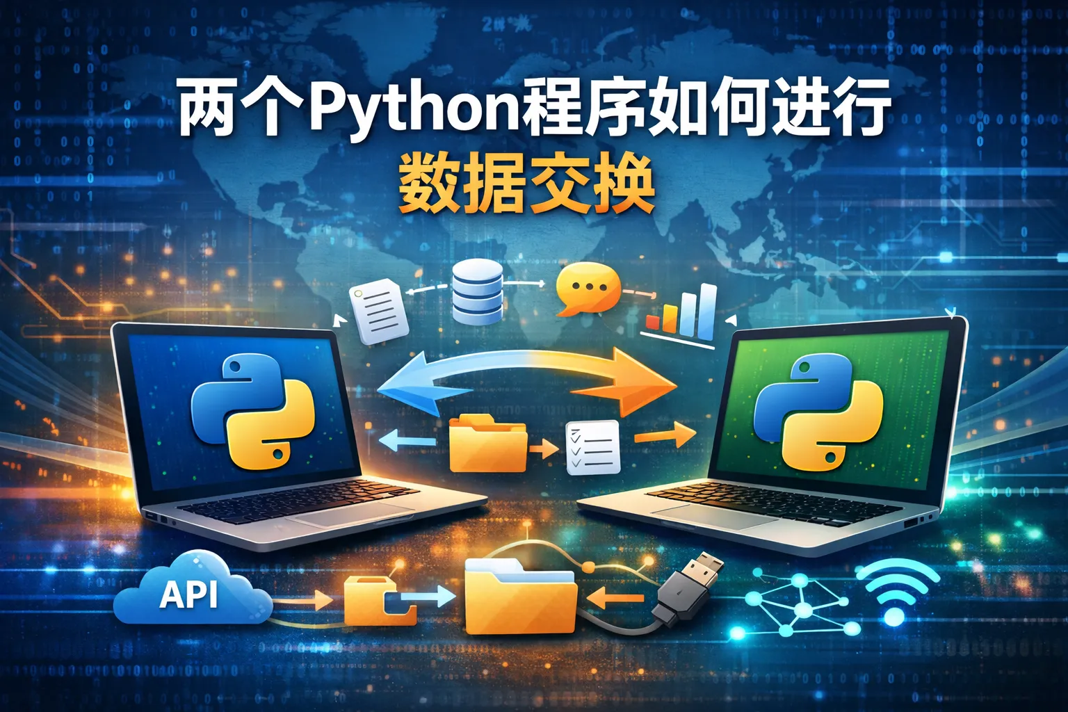 两个Python程序间交换数据可以通过多种途径实现,比如利用文件(如JSON、CSV或pickle格式)、使用网络通信(如Socket编程或HTTP请求)、借助数据库系统(如SQLite或MySQL)、或者通过进程间通信机制(如multiprocessing模块的Queue和Pipe)等。选择合适的方式取决于数据量大小、通信频率和实时性要求。