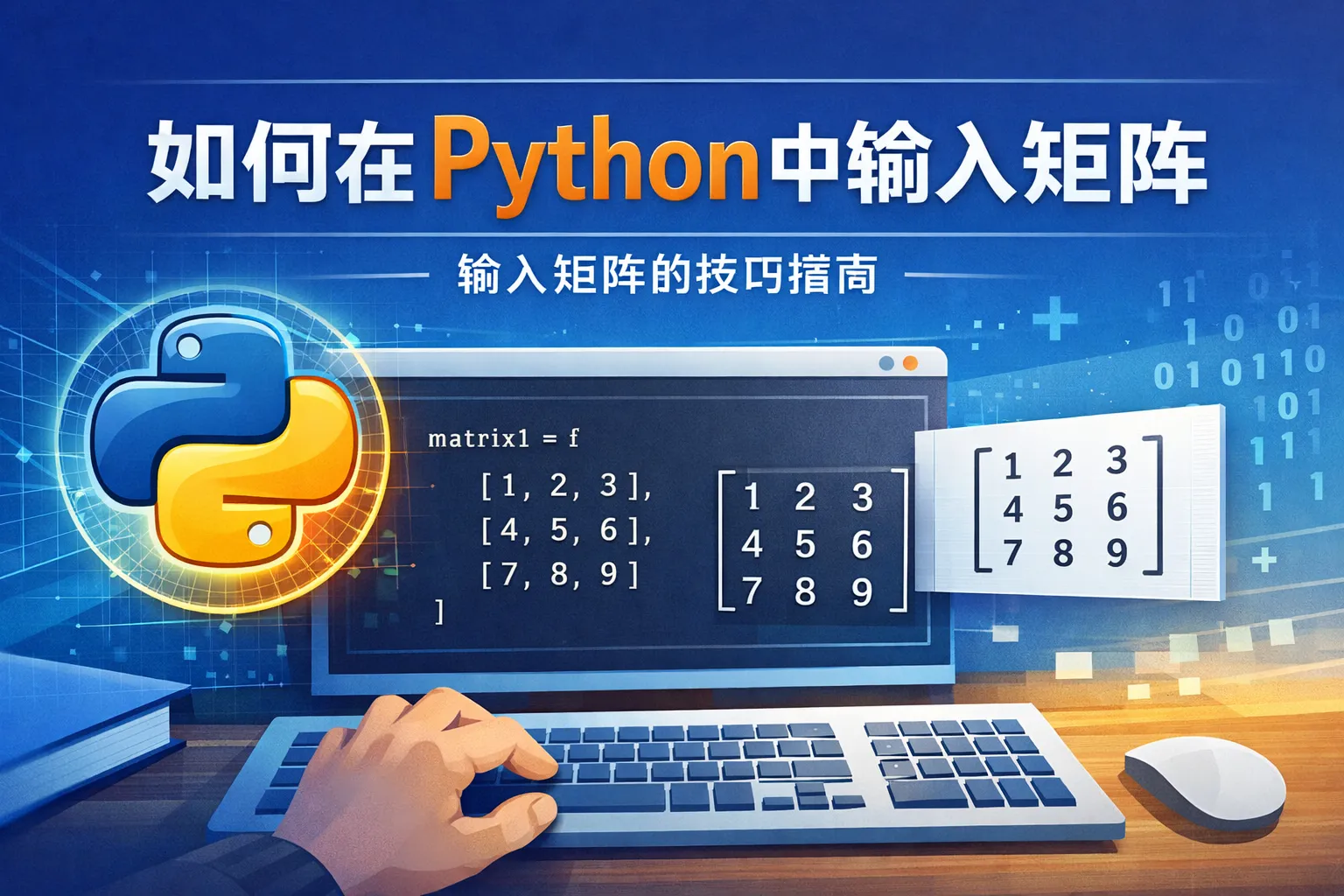 NumPy库提供了强大的数组处理功能,可以通过numpy.array()函数从列表或嵌套列表生成矩阵,也可以使用numpy.zeros()、numpy.ones()或numpy.eye()等函数快速生成特定类型的矩阵。如果需要用户输入数据,可以先按行输入数据转换成列表,再用numpy.array()构造矩阵。