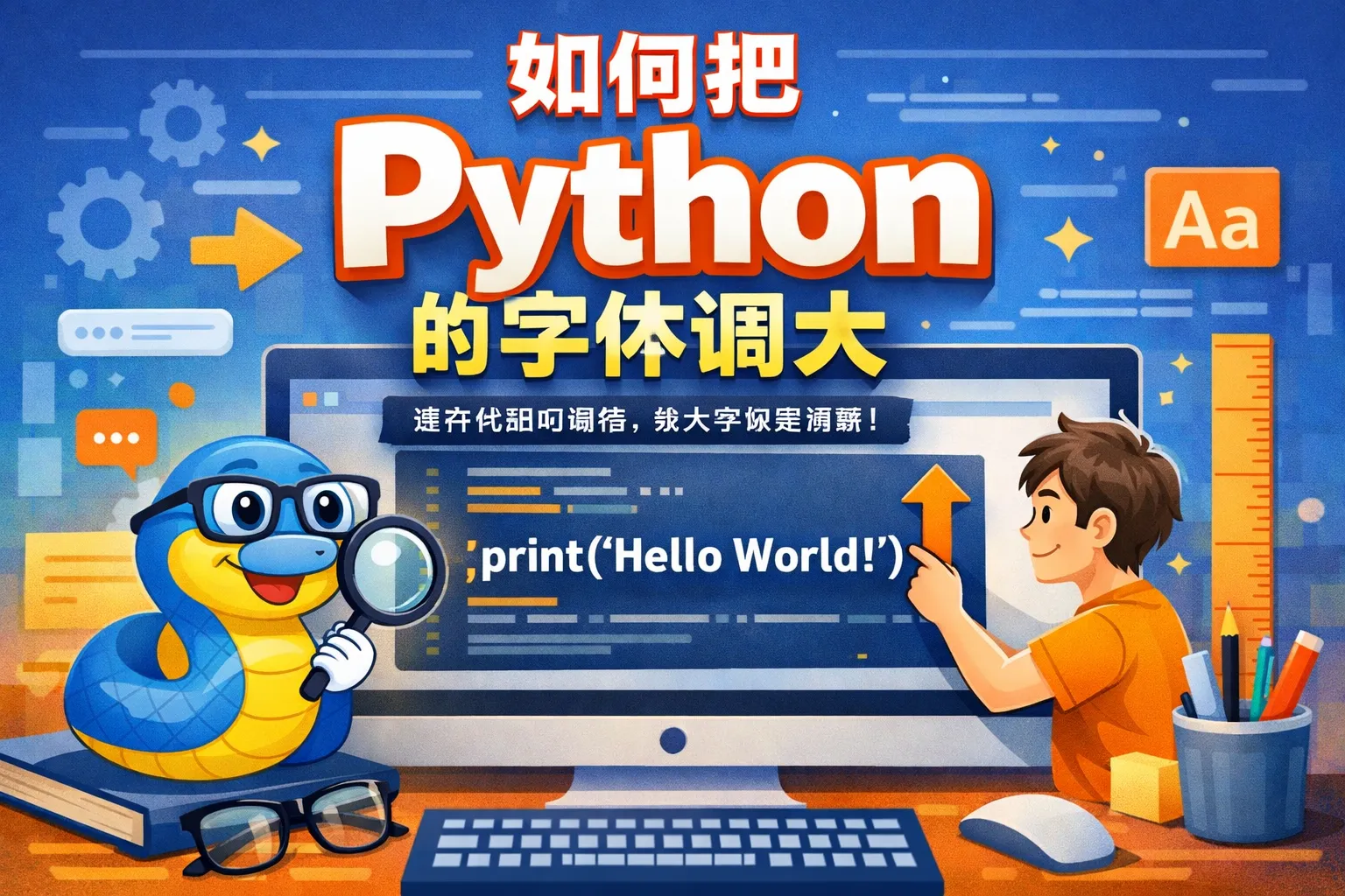 Python控制台默认字体大小是由终端或IDE控制的,Python本身无法改变输出字体大小。如果需要调大字体,需要在使用的终端或开发环境中自定义字体设置。或者,可以用图形界面库(如Tkinter)创建带有大字体的界面文本,来实现字体变大的效果。