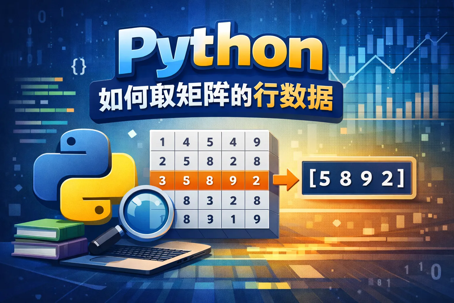 NumPy支持切片操作来取多行数据,假设矩阵为matrix,可以用matrix[[1, 3, 5], :]获取第2、第4和第6行的所有列数据。也可以用matrix[1:4, :]来获取第2至第4行的部分数据,灵活简洁。