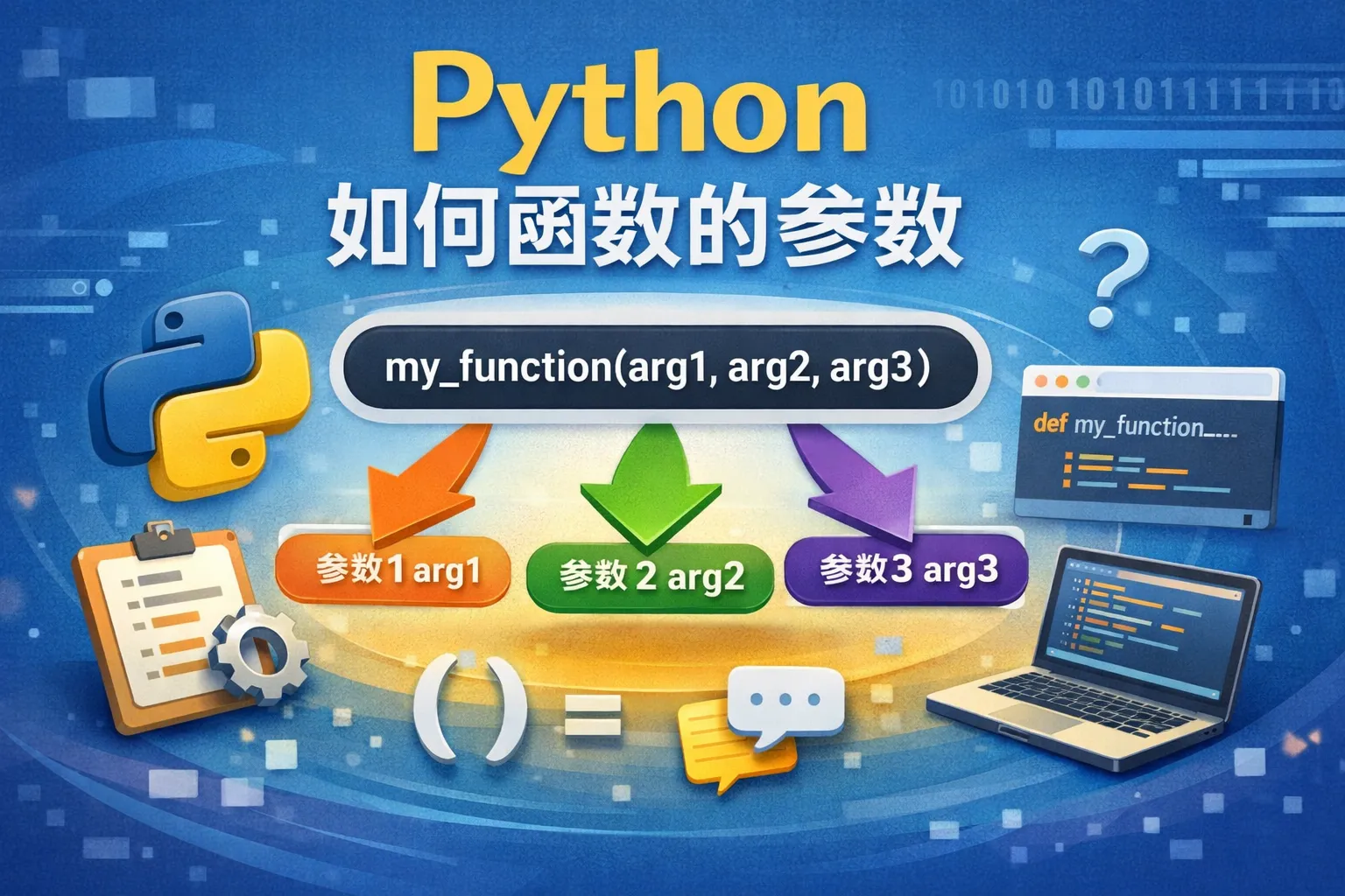 Python函数参数主要包括位置参数、默认参数、可变位置参数(*args)、可变关键字参数(**kwargs)以及强制命名参数。位置参数是最常见的参数传递方式,调用时按顺序传入;默认参数允许为参数指定默认值;*args用于接收任意数量的位置参数,**kwargs用于接收任意数量的关键字参数;强制命名参数要求调用时必须以关键字形式传入。