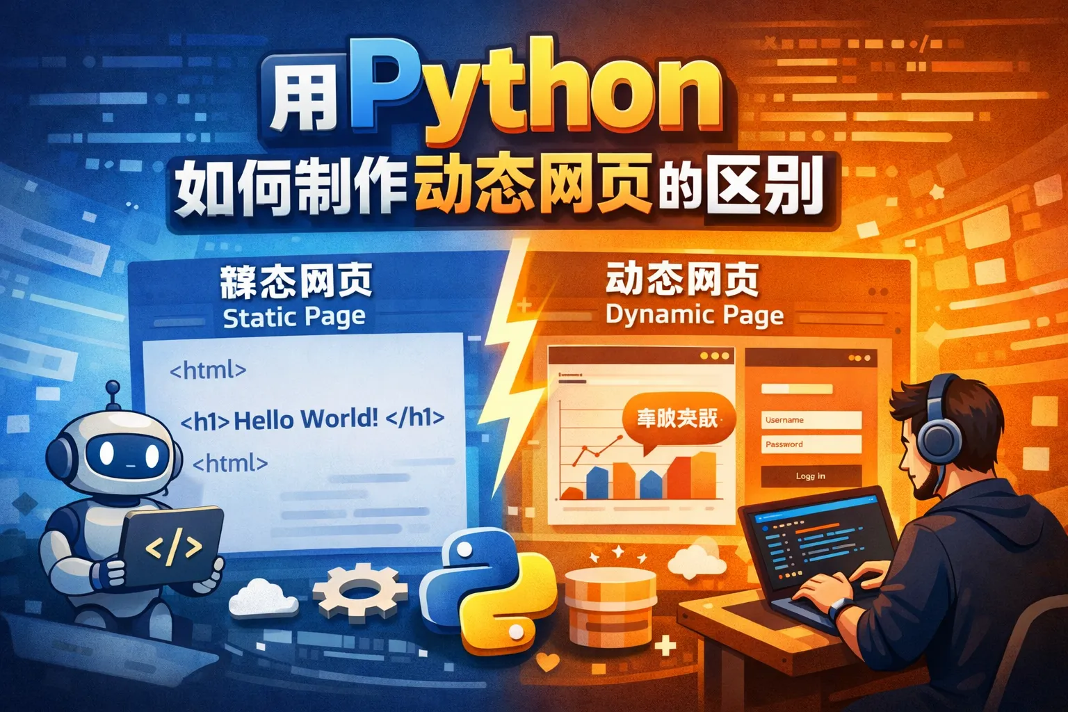 静态网页通常由HTML、CSS和JavaScript构成,内容固定不变。动态网页则通过服务器端语言(如Python)处理请求,根据用户输入或数据变化实时生成网页内容。动态网页可以与数据库交互,实现个性化内容呈现,增强用户体验。