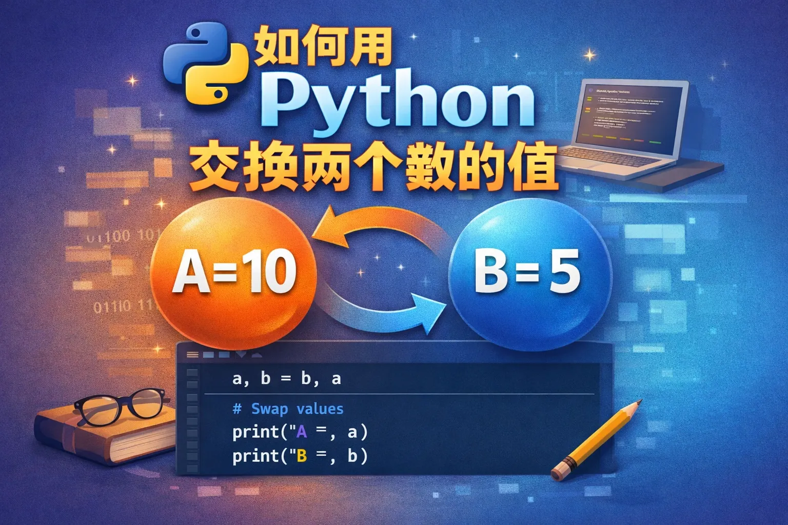 如何用python交换两个数的值