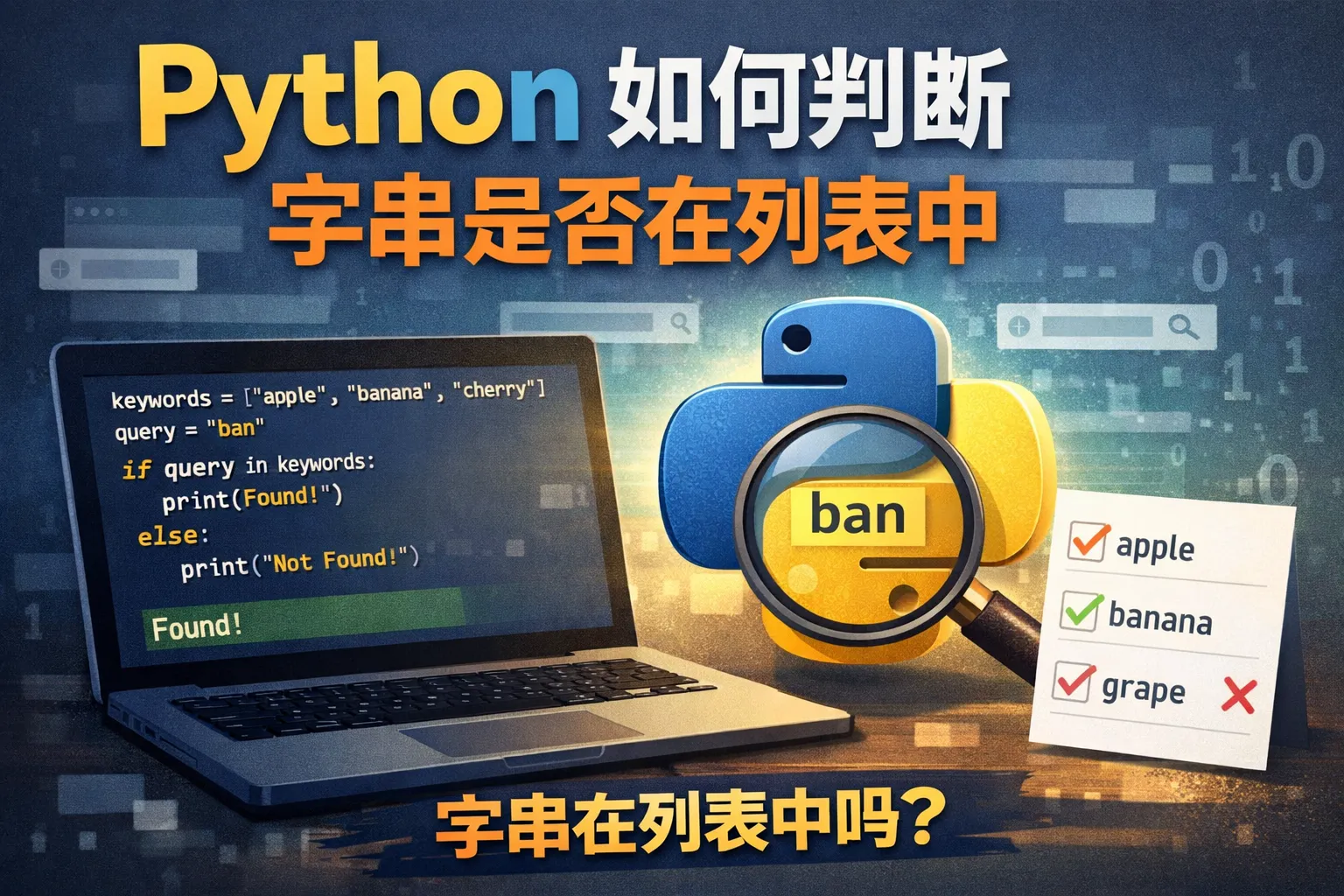 如何用Python检查一个字符串是否存在于列表里?