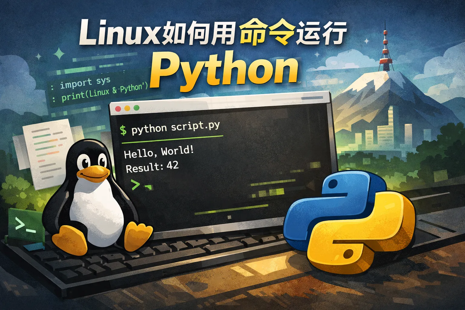 在Linux终端输入python script.py或python3 script.py命令,其中script.py是你的Python脚本文件名或路径,可以直接执行该脚本。例子: