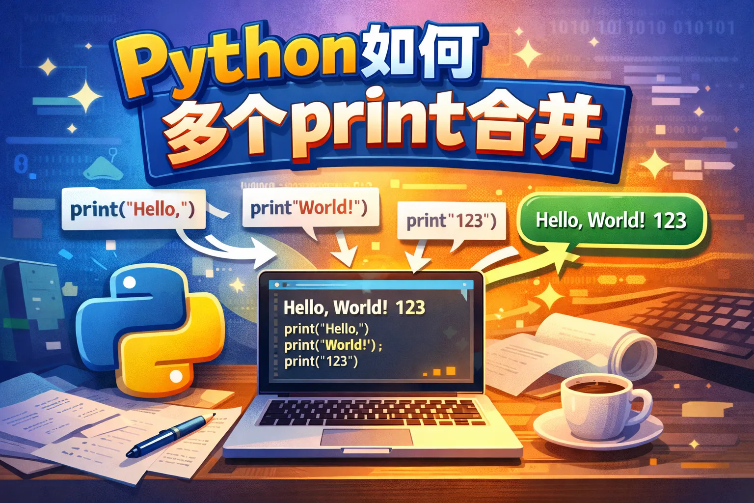 在Python编程时,如何用一种方法将多个print语句合并输出,避免多次调用print函数?