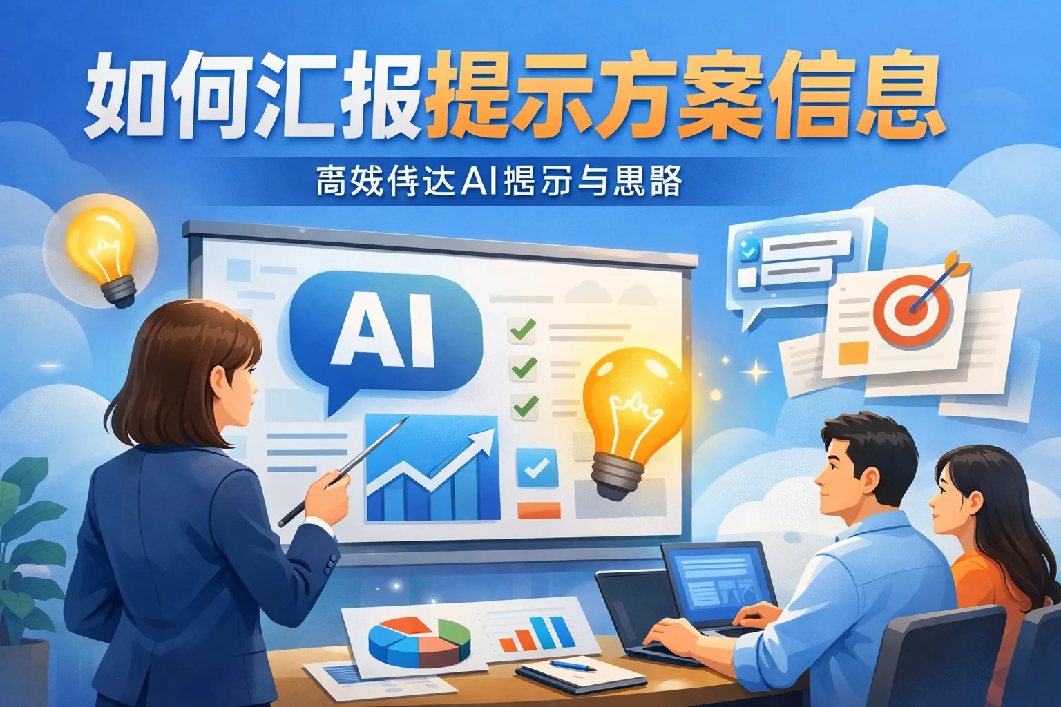 汇报提示方案时,应包括方案的目标和背景、具体实施步骤、预期效果和可能的风险。同时,附上相关数据或案例支持,使听众更容易理解和认可方案。