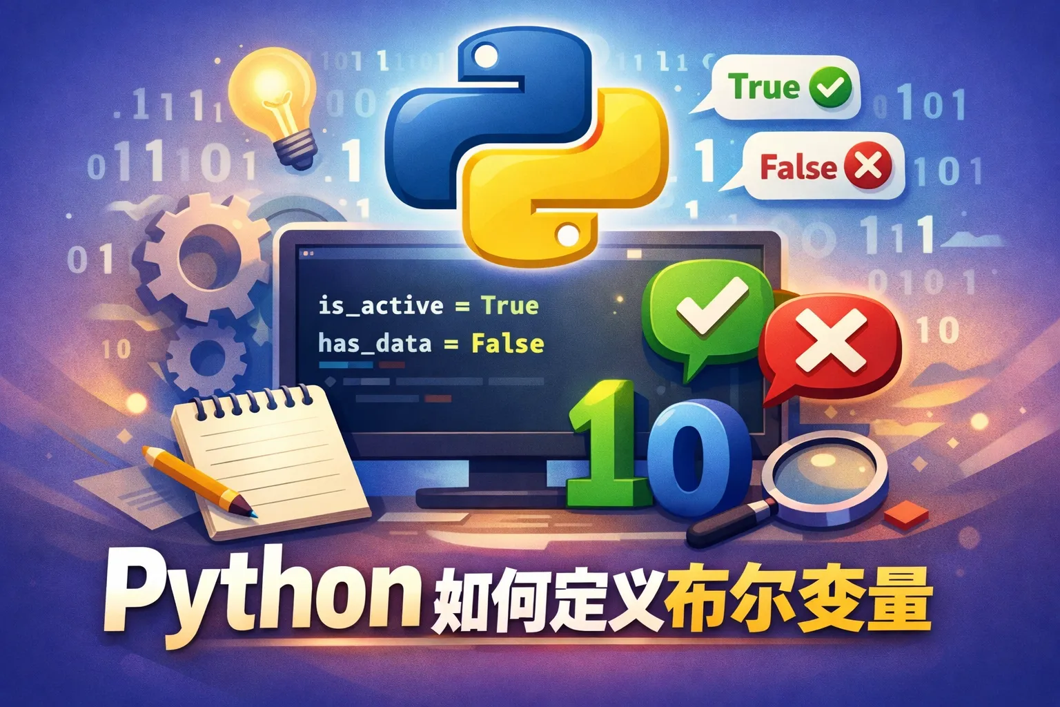 在Python中,布尔变量直接赋值为True或False即可,比如:is_active = True 代表is_active是一个布尔变量,其值为真。布尔变量可以用来表示条件、状态等逻辑信息。