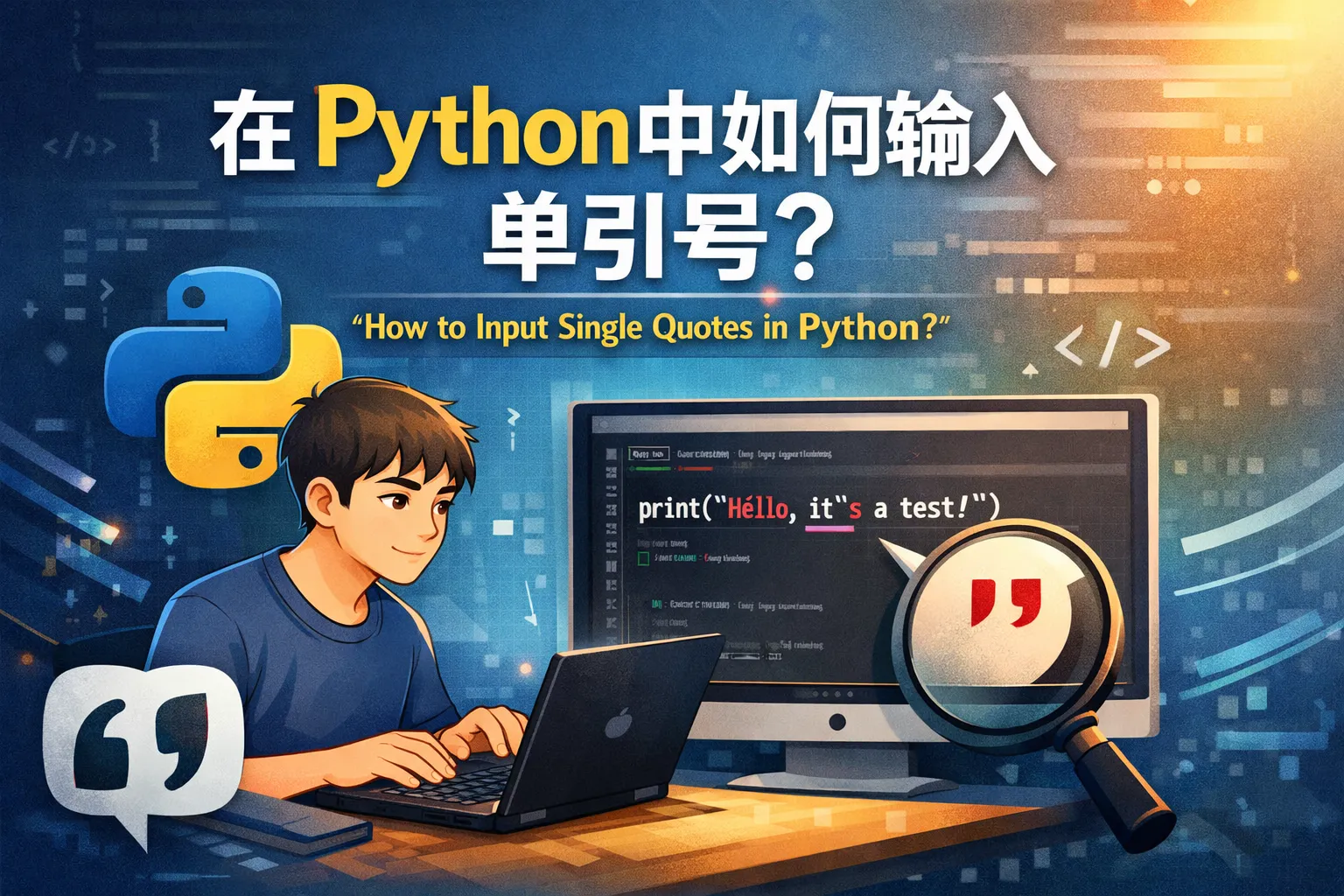 你可以使用反斜杠\来转义单引号,例如'It's a test',或者用双引号包围字符串,这样就能直接写单引号,例如"It's a test"。