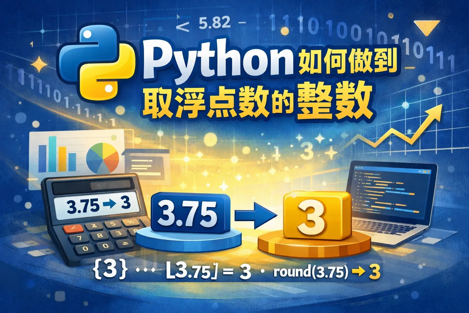 可以使用 int() 函数将浮点数转换为整数,这样会截断小数部分;还可以用 round() 先四舍五入再转为整数。此外,math.floor() 和 math.ceil() 分别向下和向上取整也可以实现类似效果。