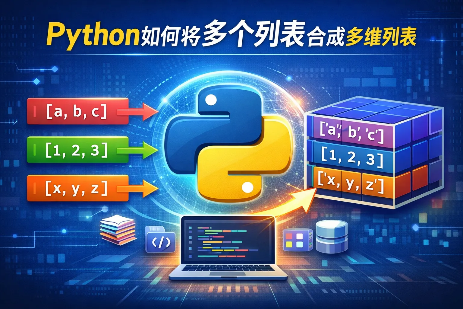你可以通过将多个列表放入一个新的列表中来创建多维列表,例如使用方括号包裹多个列表。此外,可以使用列表推导式或内置函数如zip()按元素组合多个列表形成多维结构。