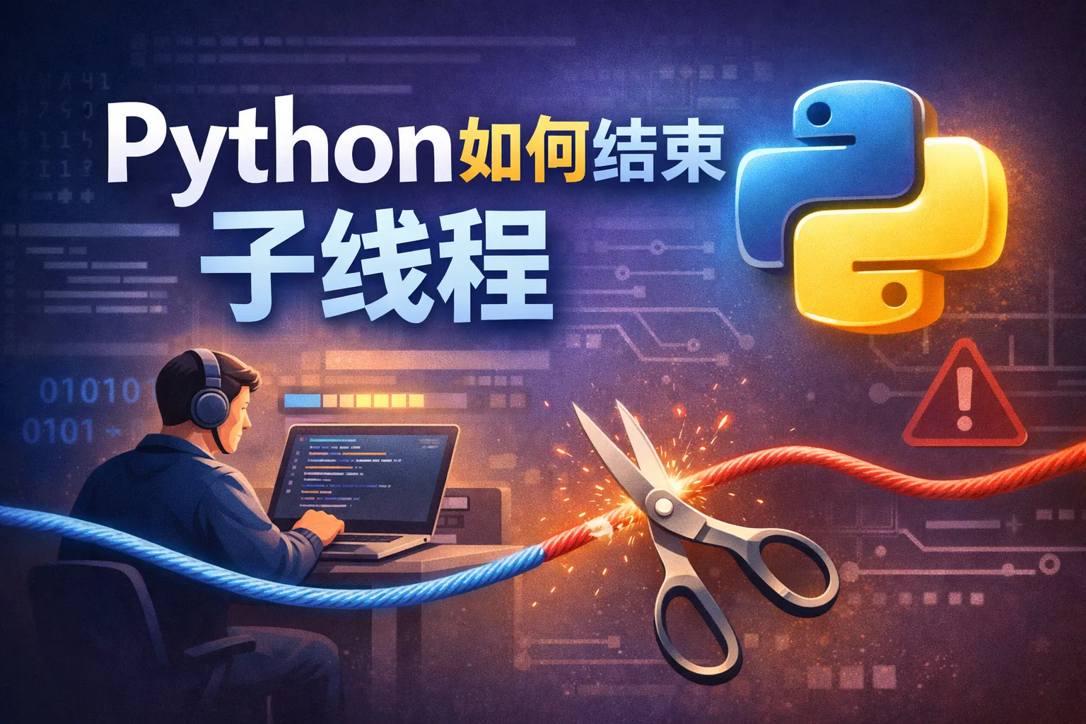 Python的线程无法直接通过调用某个API强制终止,推荐的做法是在主线程和子线程之间使用一个共享变量(例如Event对象或者布尔标志),子线程周期性检查这个变量的状态,如果收到停止信号就退出线程的运行函数,从而实现线程的安全退出。