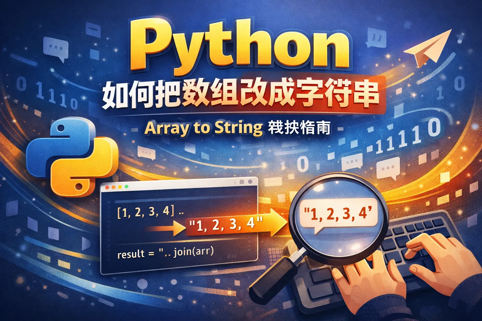 可以使用Python内置的join()方法将数组中的元素连接成一个字符串。例如,对于一个字符串数组,可以使用 separator.join(array) 的方式将元素合并成字符串。如果数组中包含非字符串类型的元素,需要先将元素转换为字符串,再使用join方法。此外,也可以使用str()函数把整个数组转换为字符串,但这样会包含数组的括号和逗号。