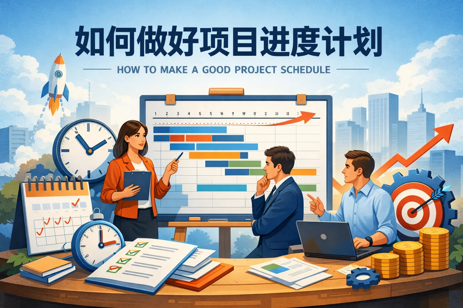 常用的工具包括甘特图、关键路径法(CPM)、项目管理软件如Microsoft Project、Asana及Jira等。技术上,可利用资源平衡、进度压缩(赶工和快速跟进)以及风险管理技术。此外,应用定期进度审核和进展汇报机制,结合自动化提醒功能,能够有效提升项目进度计划的管理效率和透明度。