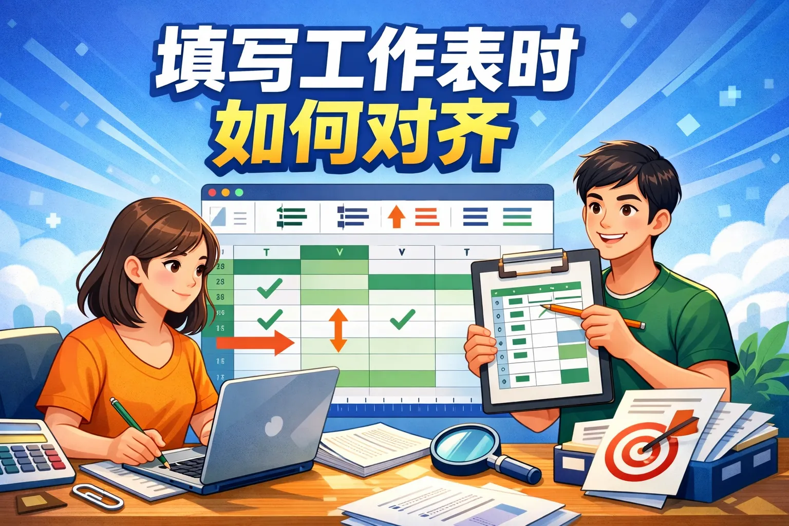 填写工作表时如何对齐