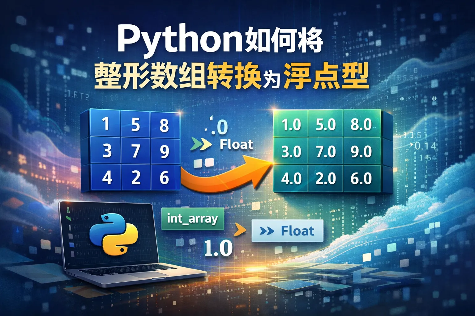在Python中,可以利用NumPy库来实现整形数组到浮点型数组的转换。具体做法是调用数组的astype()方法,并传入float作为参数,例如: