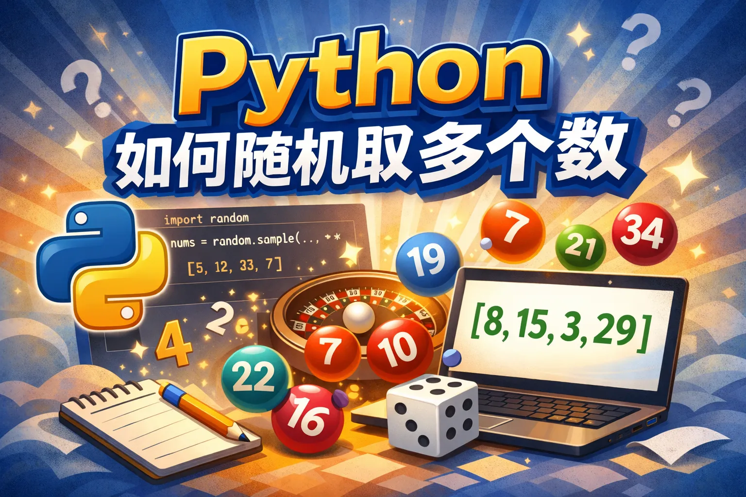 可以先用range函数创建指定范围的数字序列,然后用random.sample随机选取不重复数字,或用random.choices选取允许重复的数字。例如,random.sample(range(1, 100), k=10)随机选10个不同数字。