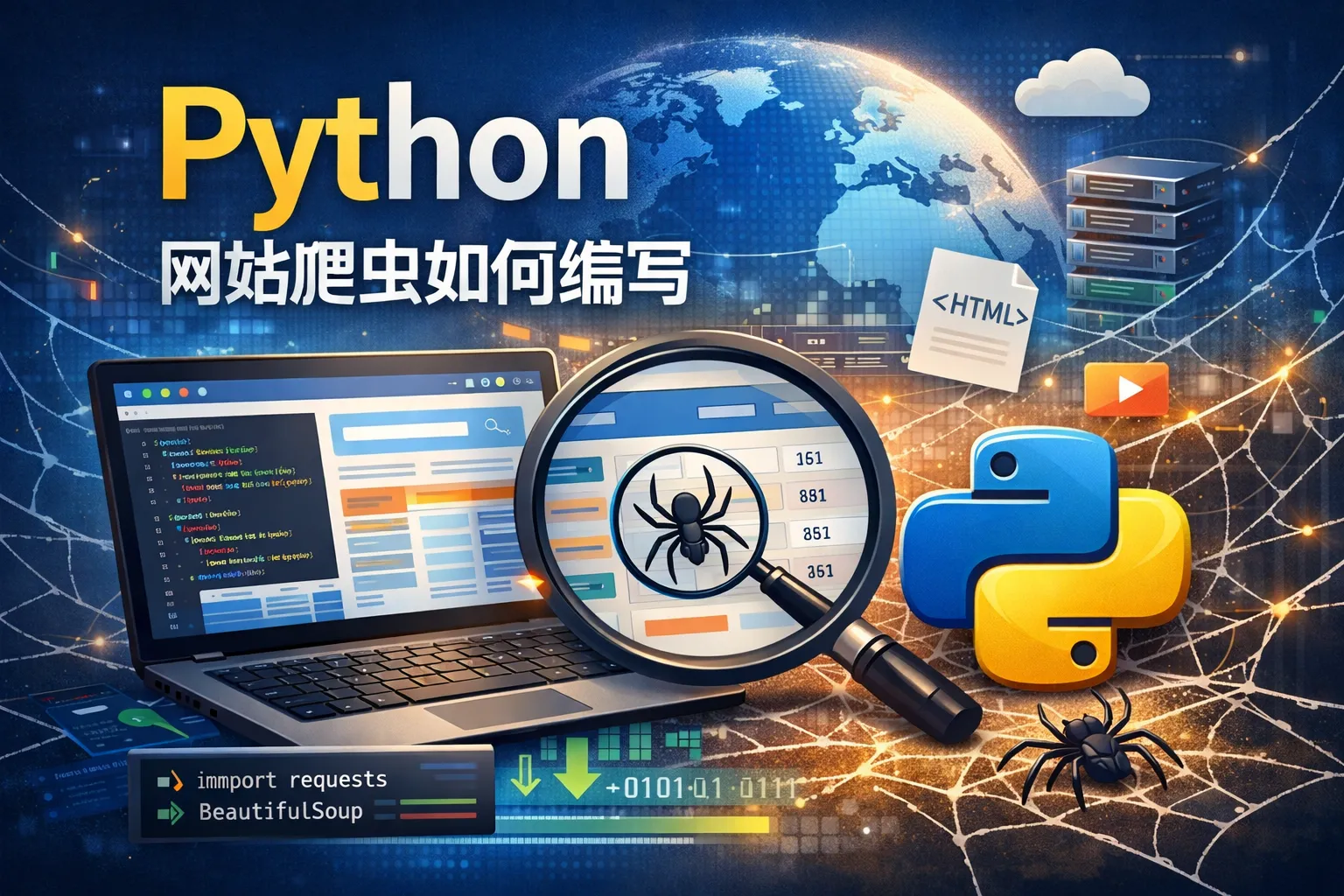 编写Python网站爬虫前,需要掌握Python编程基础,包括变量、函数和异常处理。同时,了解HTTP协议、HTML结构以及常用的爬虫库如requests和BeautifulSoup,对爬取网页数据和解析内容非常重要。
