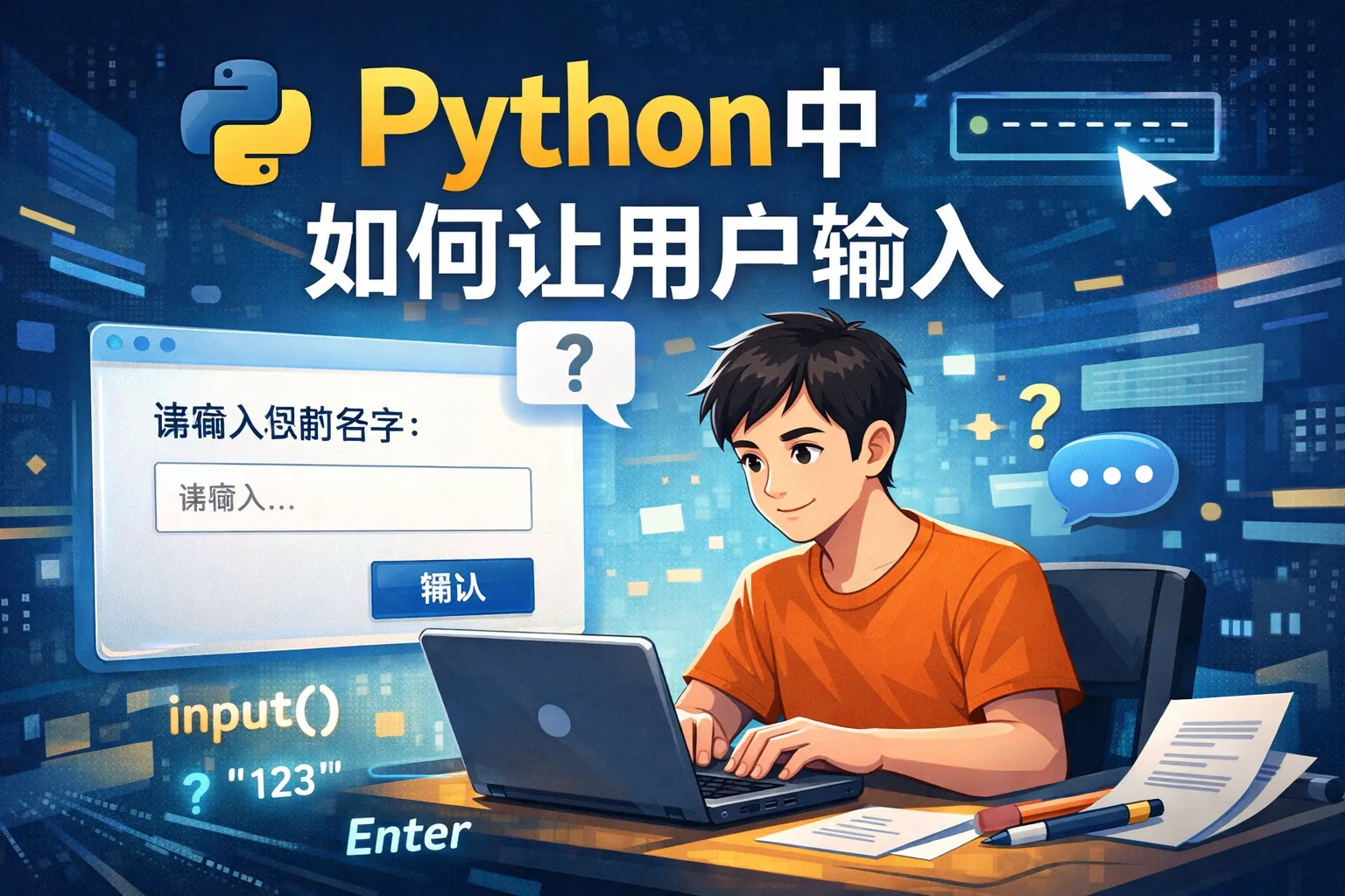 input()函数支持传入提示字符串,程序在等待用户输入时会显示此提示,帮助用户了解需要输入何种内容。例如:age = input('请输入您的年龄(数字):')。合理的提示能提高用户输入的正确率。