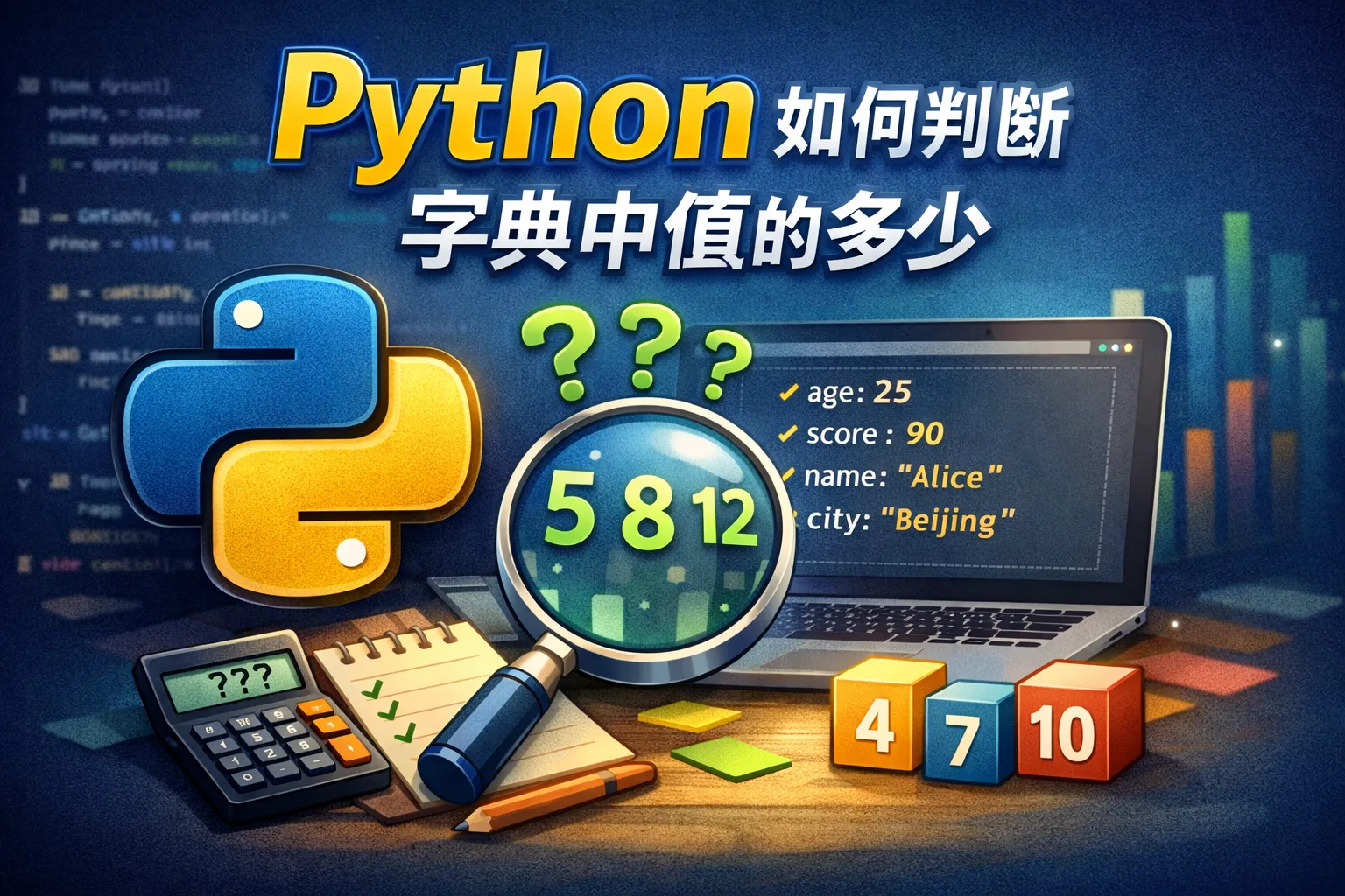 可以遍历字典的每个键值对,通过type()判断值的类型,再判断是否支持len()函数,最后打印元素数量。示例代码: