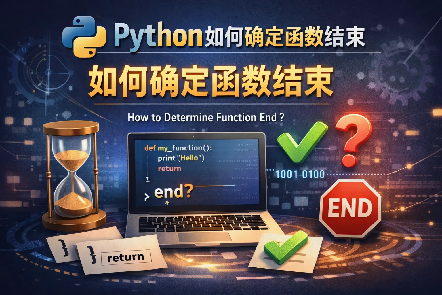 Python函数在执行完所有代码后自动结束,通常通过return语句返回值表示函数完成,如果没有return语句,函数在执行完所有代码后隐式返回None,函数执行至此即结束。