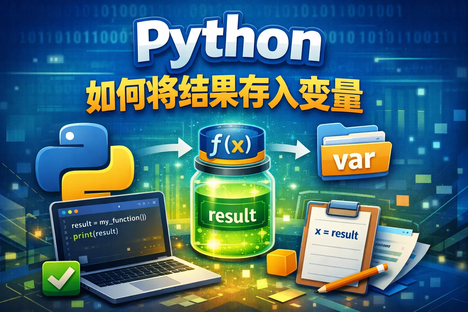 在Python中,你可以通过赋值操作将计算结果存入变量。例如,使用x = 5 + 3,变量x就保存了值8。之后你可以通过变量名访问这个值。