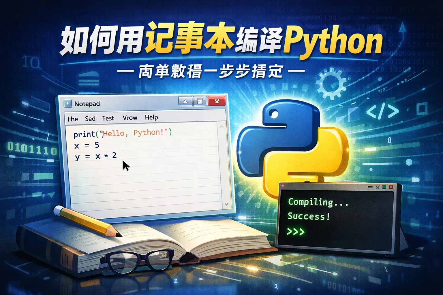 如何用记事本编译python