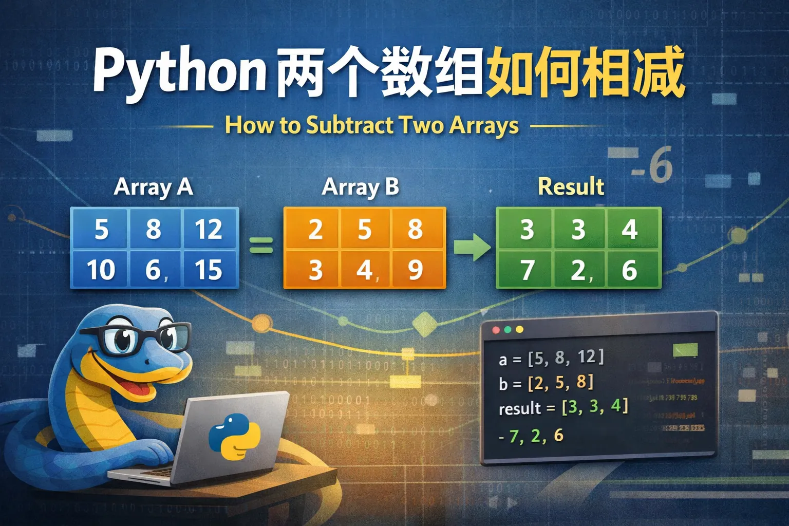 导入NumPy库后,将两个Python列表转换成NumPy数组,直接用“减号”操作符即可得到相减结果。例如: