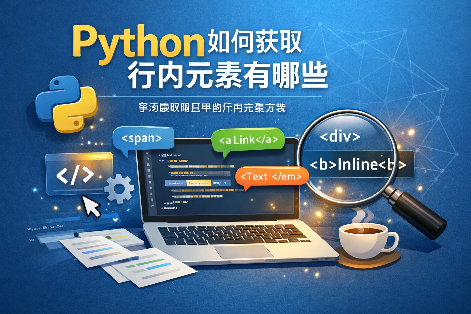 利用Python的BeautifulSoup库,可以轻松解析HTML文档,找到所有行内元素,比如、、等。通过遍历文档树并过滤出标签属于行内元素列表的节点即可实现提取需求。