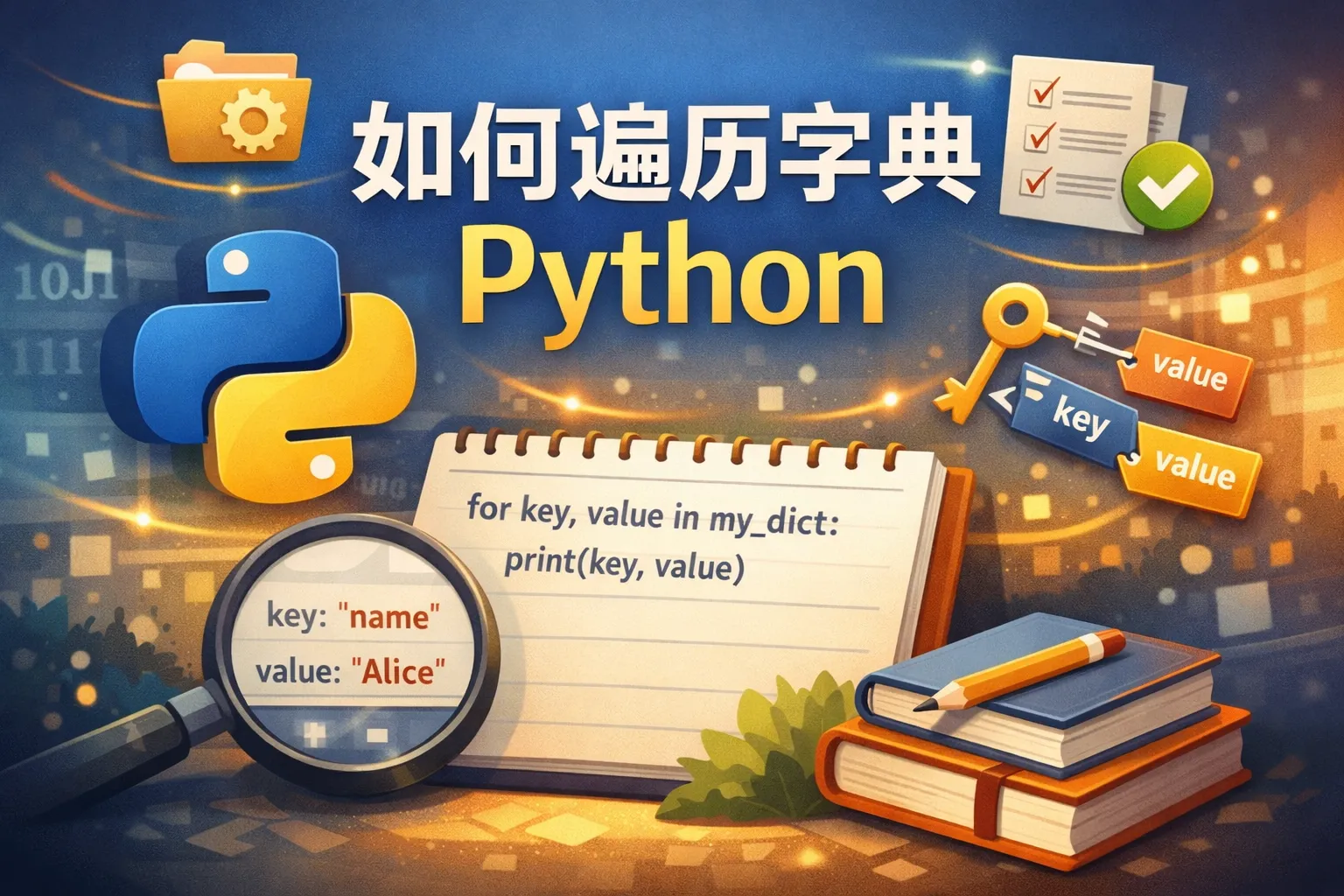 通过for key, value in dict.items()的循环结构,可以方便地遍历字典并同时访问每个键及其对应的值。