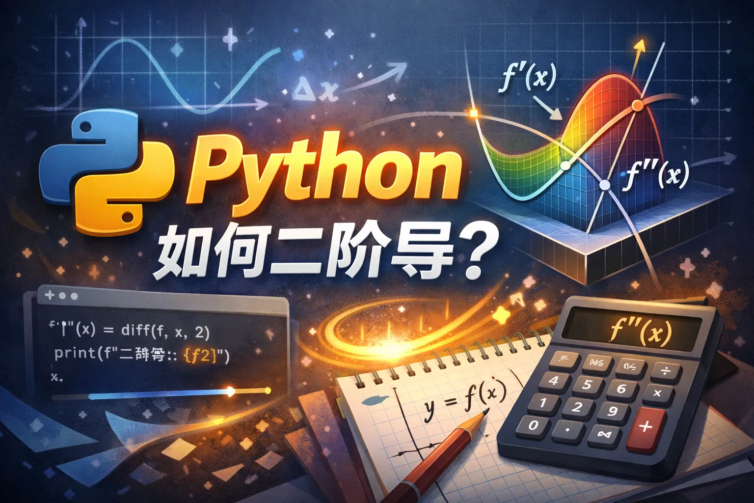 SymPy是Python中强大的符号数学库,可以方便地计算导数。通过定义符号变量和函数,使用diff函数两次即可得到二阶导数。例如,定义变量x,函数f,然后执行diff(f, x, 2)即可求得二阶导数。