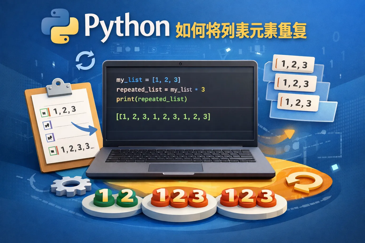 Python列表支持乘法操作符,可以直接用lst * n来实现列表整体重复。例如,lst = [1, 2, 3],lst * 3 会返回 [1, 2, 3, 1, 2, 3, 1, 2, 3],即列表内容重复3次。