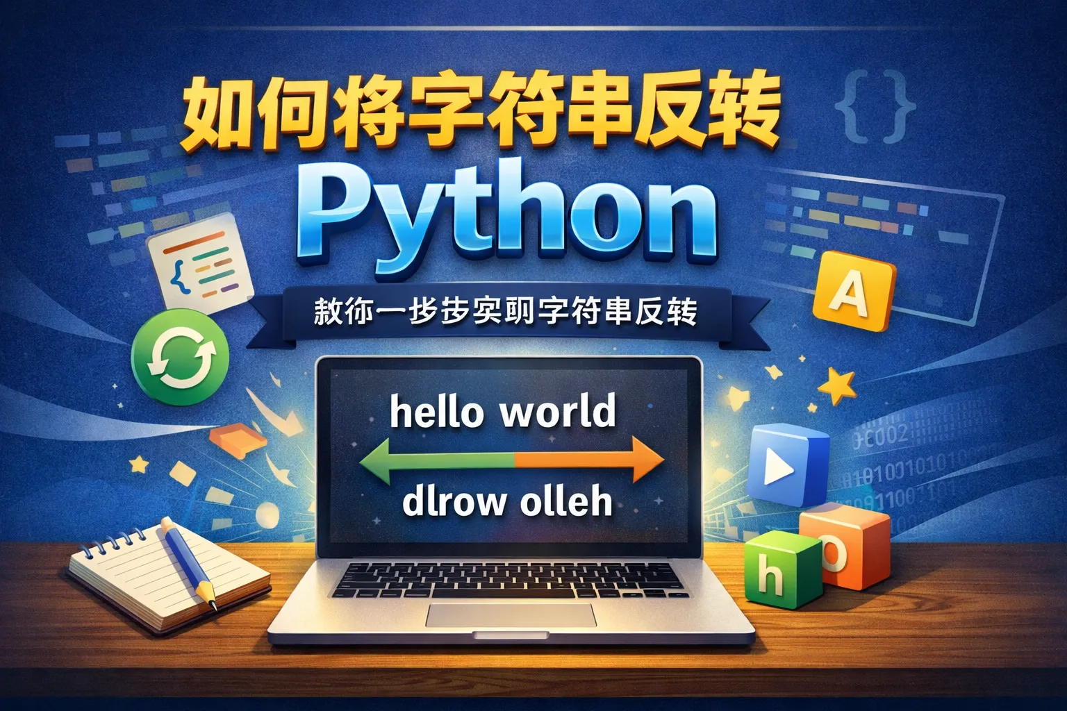 可以使用内置函数 reversed(),将字符串转为可迭代的反转对象,再用 ''.join() 连接成字符串,例如:''.join(reversed(string))。此外,也可以通过遍历字符串,从后向前逐一拼接字符得到反转字符串。